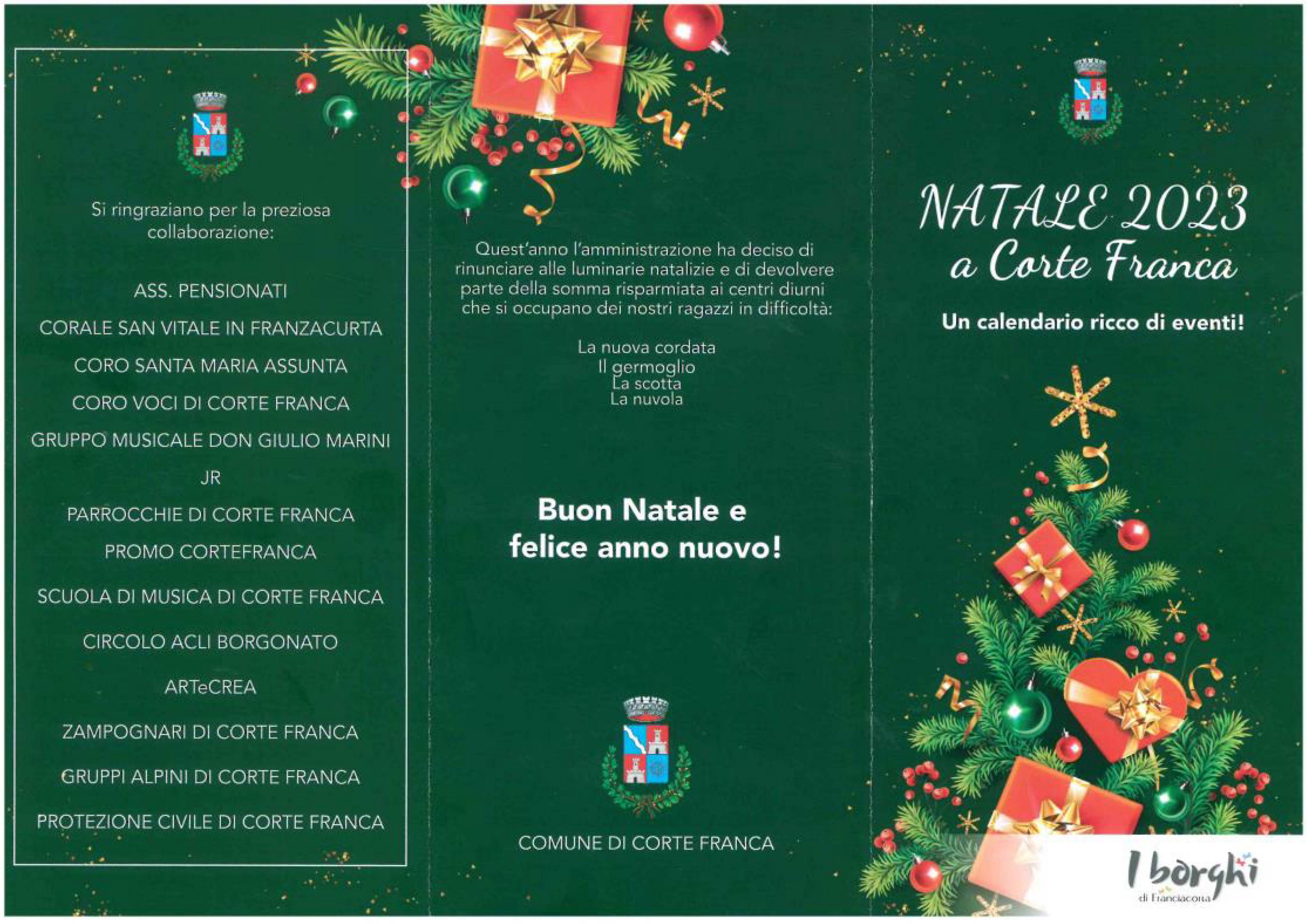 Ore 16:00 Auditorium "1861 Unità d'Italia" Concerto di Natale A cura del gruppo musicale don Giulio Marini. Nell'intervallo: consegna del Riconoscimento ai Novantenni di Corte Franca.